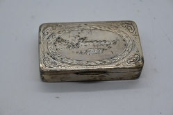 Snusdosa i silver bär inskription, vikt 49gr
