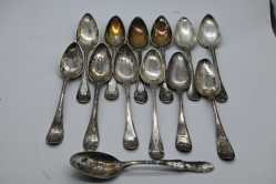 Matskedar i silver 13st dat från 1824 till 1864 olika modeller vikt 810.41gr