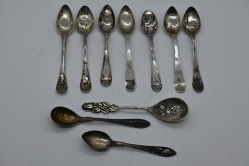 Kaffeskedar 9st + dopsked 18/1900.tal vikt 131.60gr
